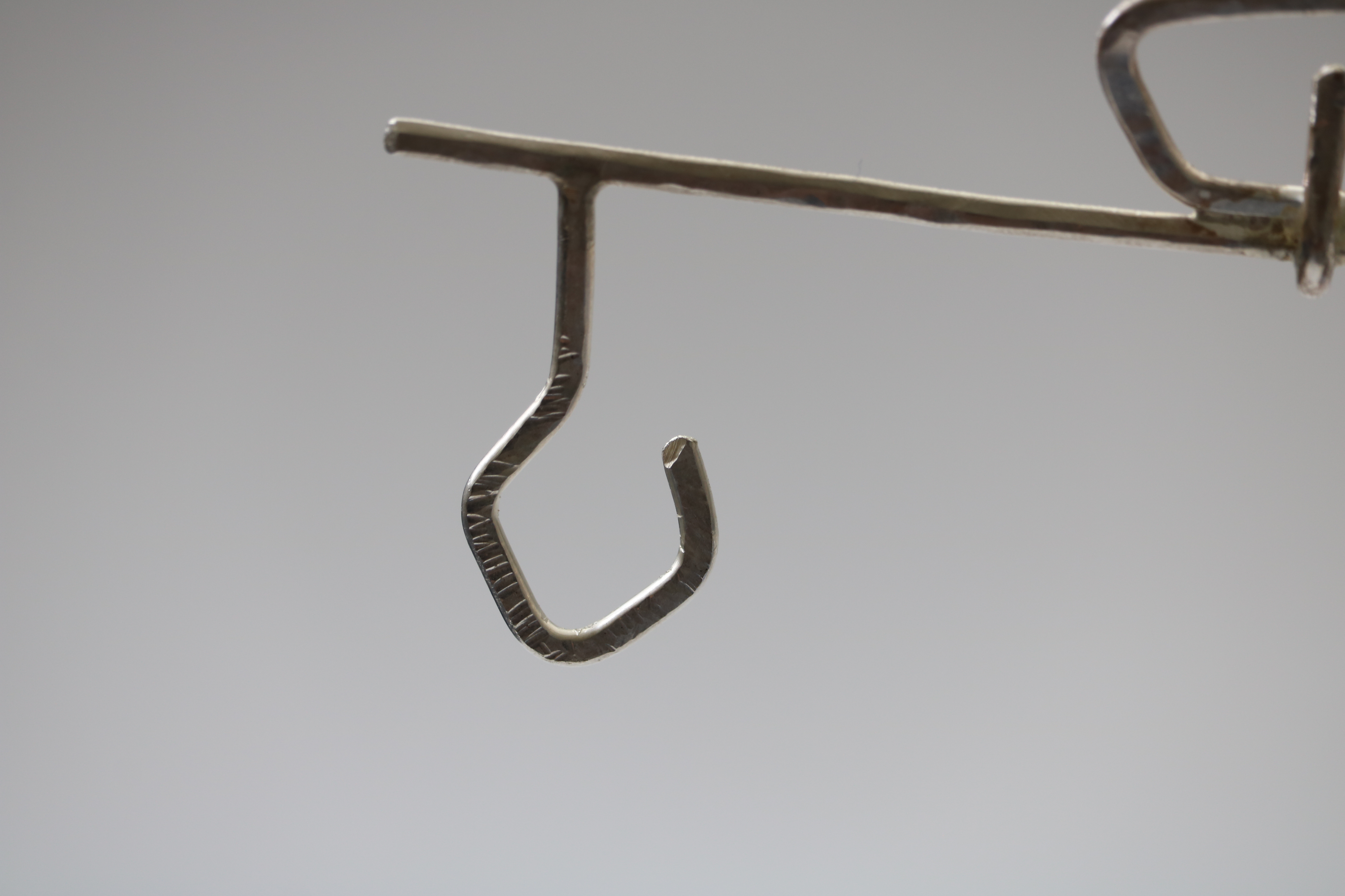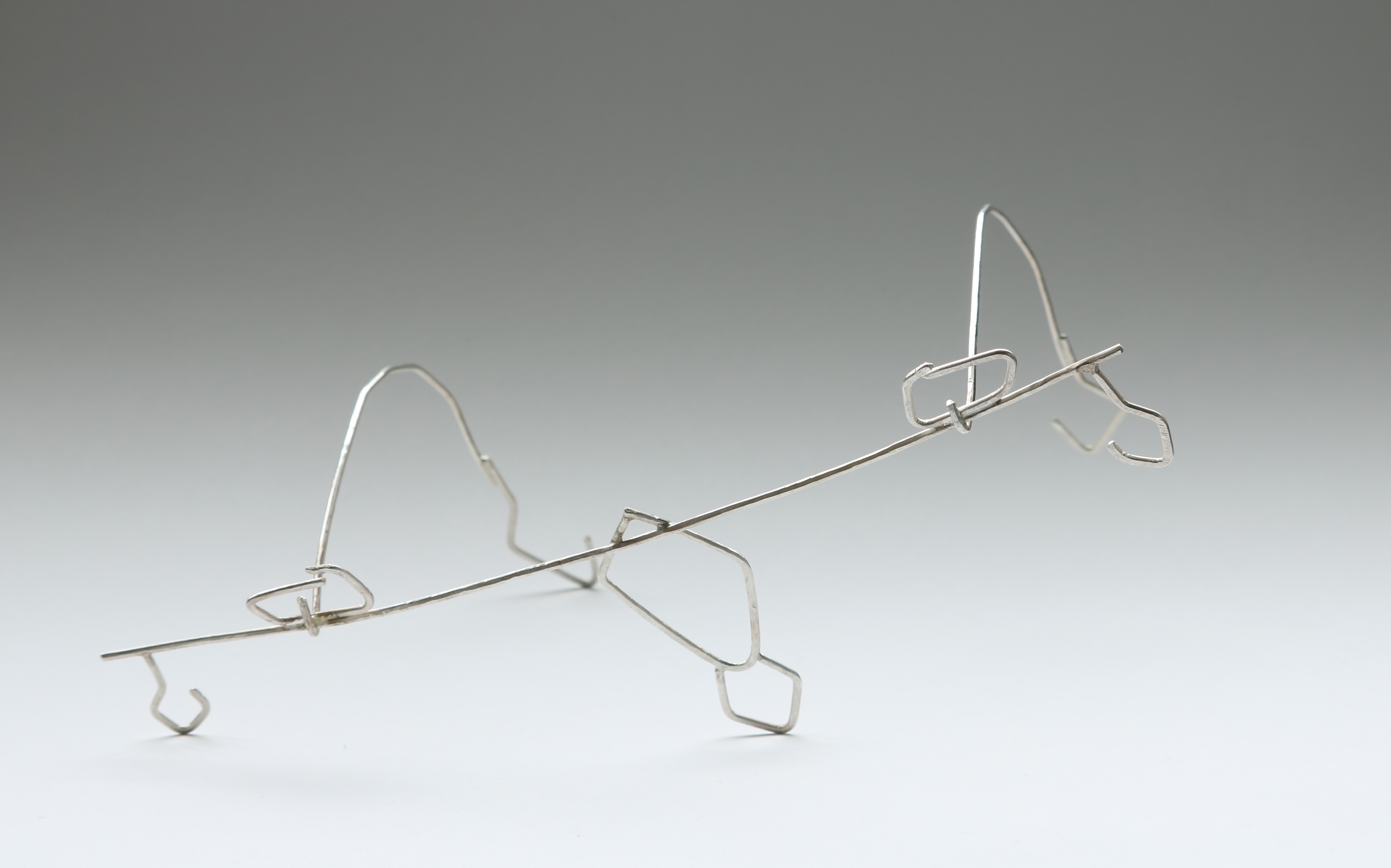 This wearable face jewellery is made of sterling silver wire, bent, hammered and soldered into it’s final form. The idea behind it is that it would serve as a sort of compass to the where, helping to navigate the world as they travel through it.