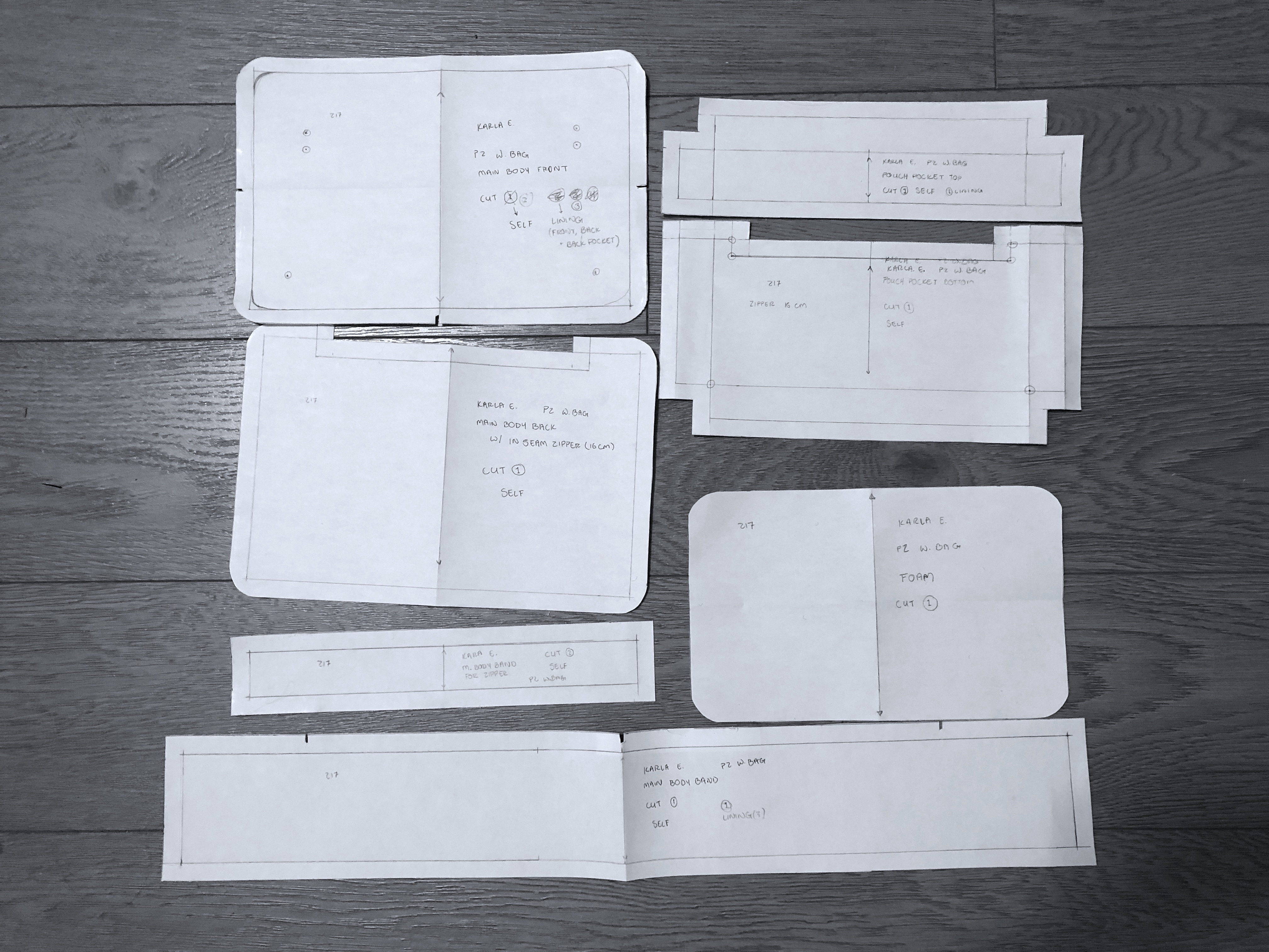 6. The original tech drawing for the original design, changes to shape and locations of pockets were made later.